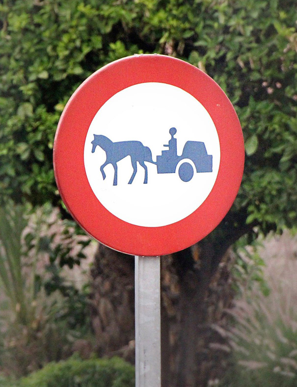 ときどき見かけるのが、ムチを打たれて結構なスピードで走っている馬車。