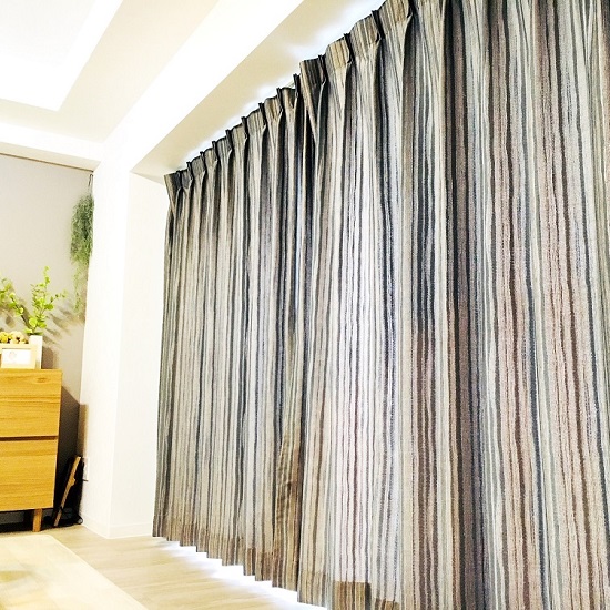 カーテン拝見いたしました♪お客様がおっしゃる通り、ストライプのデザインは空間を広く見せてくれる効果がありますので、とてもおすすめなんです!