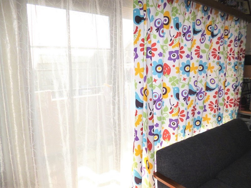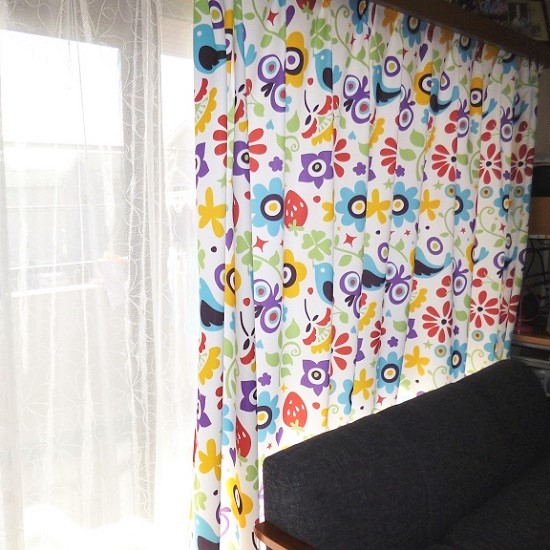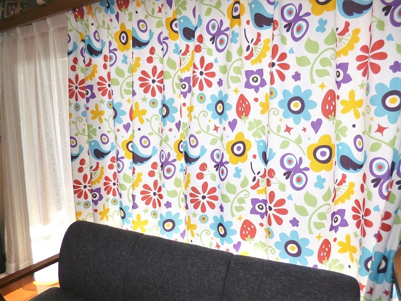 明るいデザインのカーテンで部屋がとても明るくなりました。