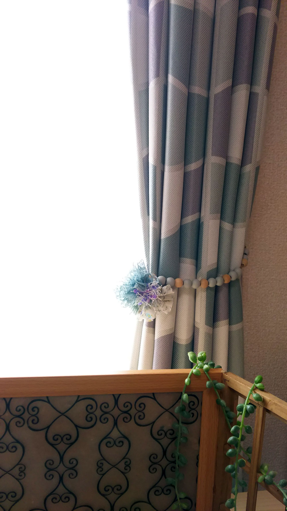 タッセルは標準の共布をお付けしていますが、別途お客様がご用意いただいたタッセルは、まるでカーテンとペアでご紹介していると勘違いする程、ブルックに馴染んでより可愛くなっていますね^^