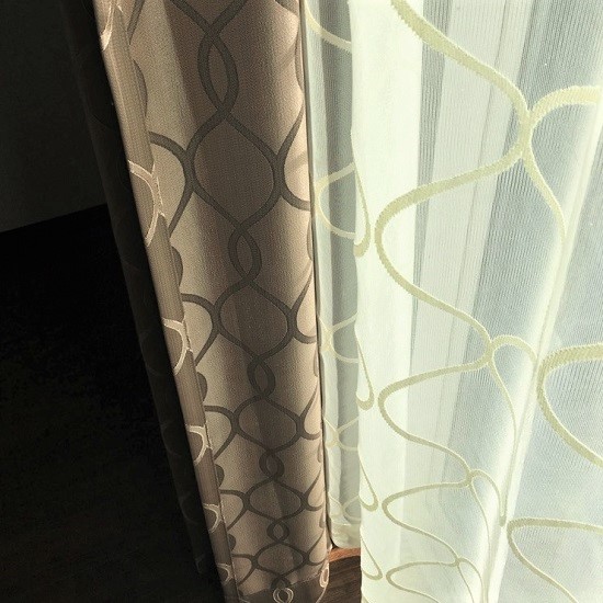 床色、建具に合わせてブラウン系に、同じ模様に合わせてレースカーテンをコーディネートしてみました。