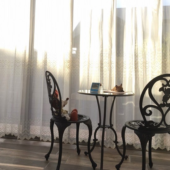念願だったガーデンルームを作ったので、そこに取り付けるカーテンを注文させていただきました。
