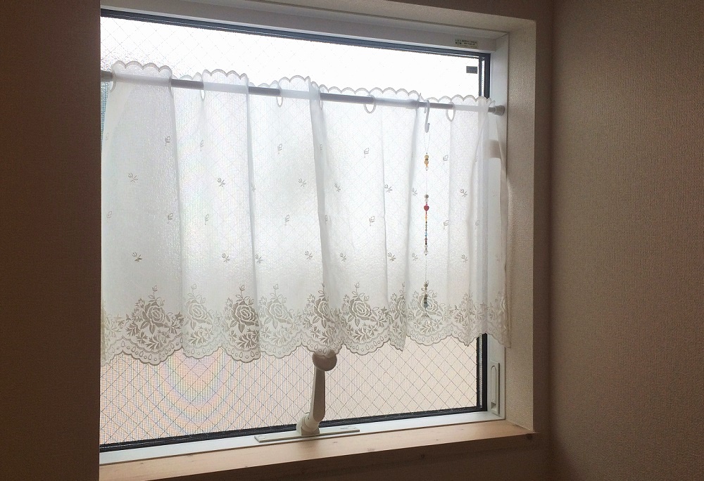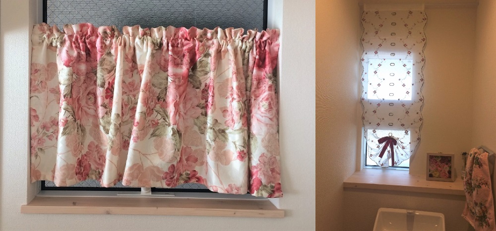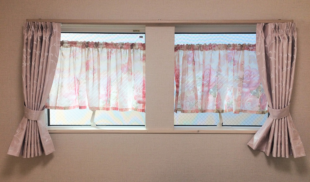 今回のお客様のように、小窓には可愛いカフェカーテンをして頂いたり、遮光が必要な腰窓には遮光のロールスクリーンにしたり、選択肢はたくさんございます。
