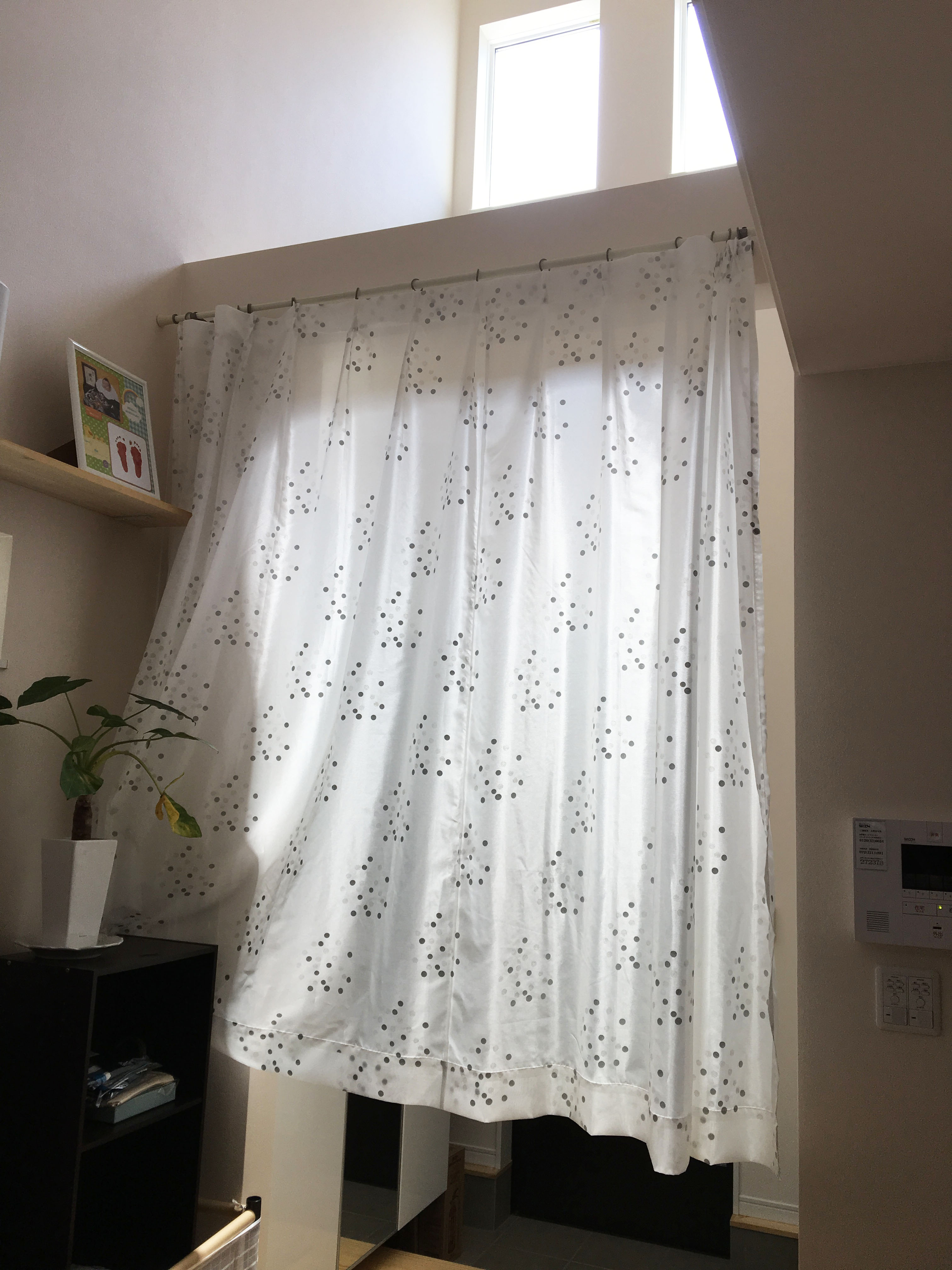 お客様のご自宅は玄関に吹き抜けがあるそうで、目隠しに<リノ シルバー>をお使いいただいております。