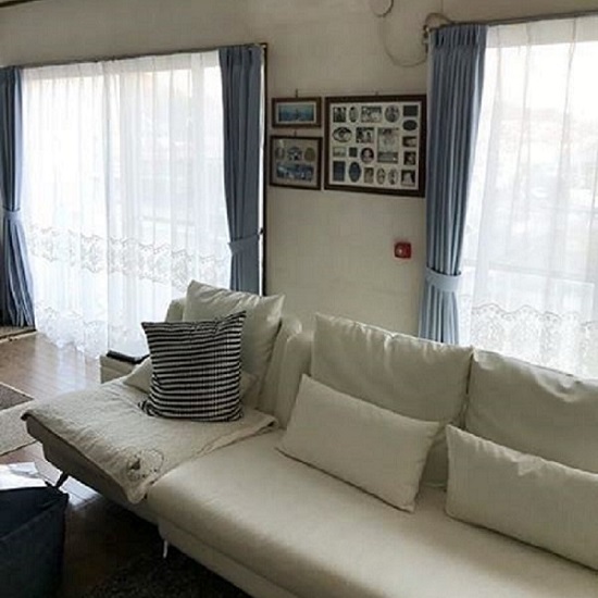 レースのカーテンとブルーのカーテン届いて、かけかえました。イメージ通りできました。ありがとうございます。