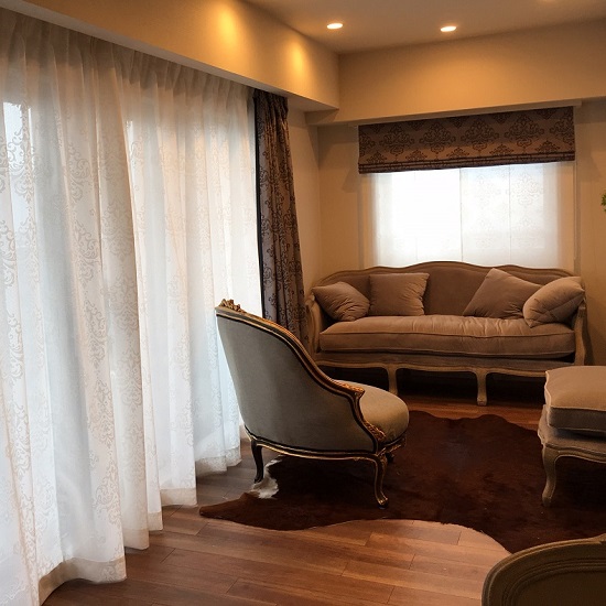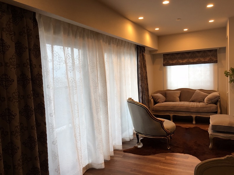 ギルドのカーテンとシェードのセットは部屋を外国のホテル風に見せてくれます。
