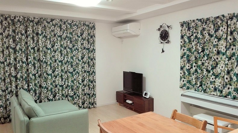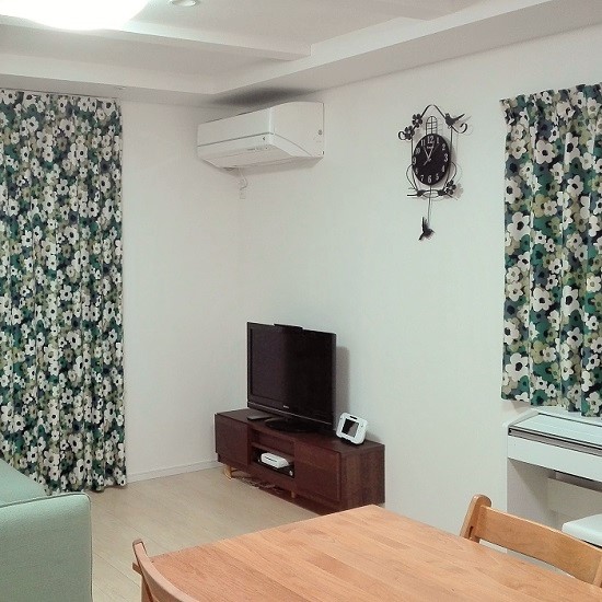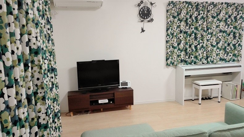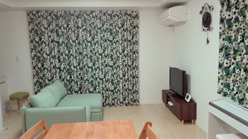 夜カーテンをしめると可愛い花柄とグリーンに癒やされます。気に入ってます(^_^)