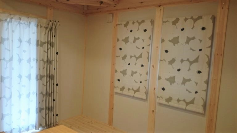 寝室は遮光を第一に考えていたので一級遮光のシェードを広め・長めにオーダー