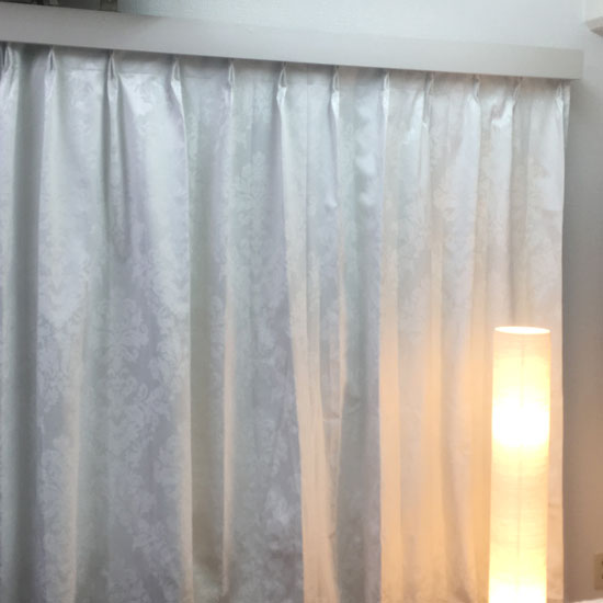 今回お客様がお選びいただいた<グランデ ホワイト>は、アクリル樹脂で3層にコーティングしているから、防音性、断熱性に優れ、光も通しません(超1級遮光です)。注目すべきは断熱効果で、冬はお部屋の温かい温度を外へ逃がさず夏も外の熱気からお部屋を守ります。冷暖房効率もアップするので、エコにもつながりますよ♪