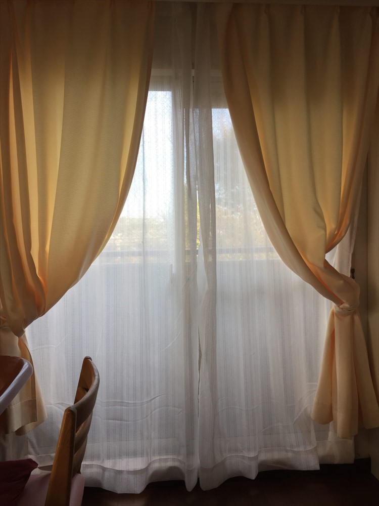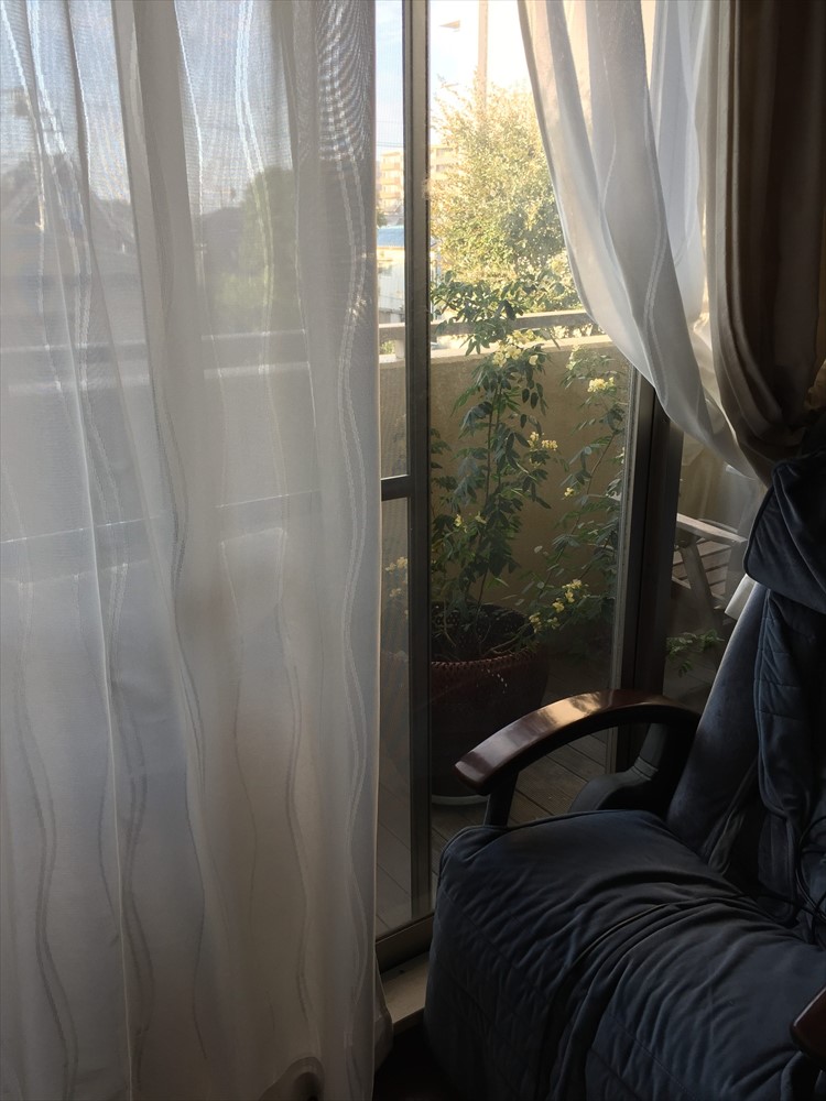 オレンジ系のブラインドにしていましたが冬はカーテンの方が暖かい印象で和みます