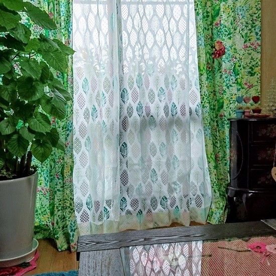 グリーナリーオパールプリントリーフオーナメントグリーンは昼間は外からは部屋の中が本当に見えにくいです