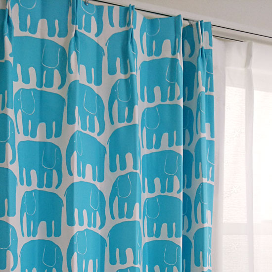 北欧らしい大胆で可愛らしい像さんの模様と鮮やかなライトブルーがお部屋の印象を一気に華やかにしてくれるカーテンです♪♪
