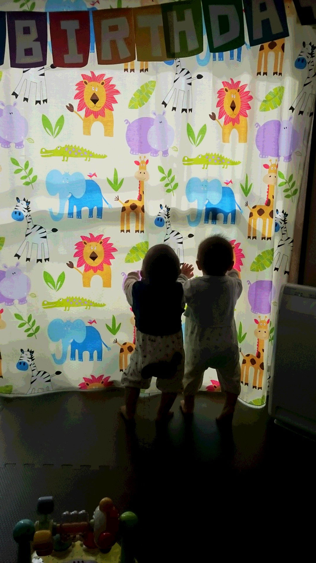 取り付けたら、早速ライオンを指差したり、二人でかくれんぼしたりと、楽しんでいます。