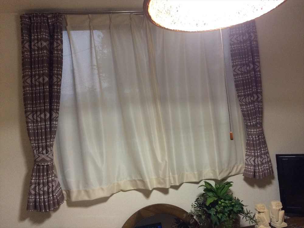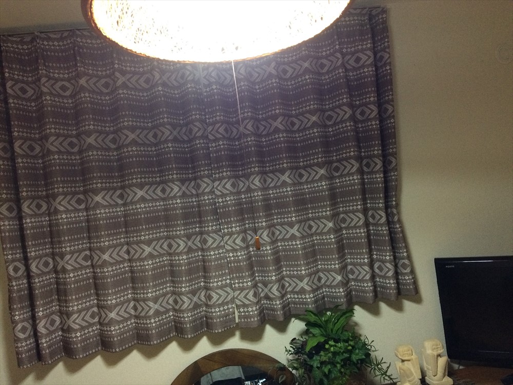 カーテンと家具や照明、小物に至るまでアジアン調な素敵なお部屋ですね+。:.゚(人〃∇〃)