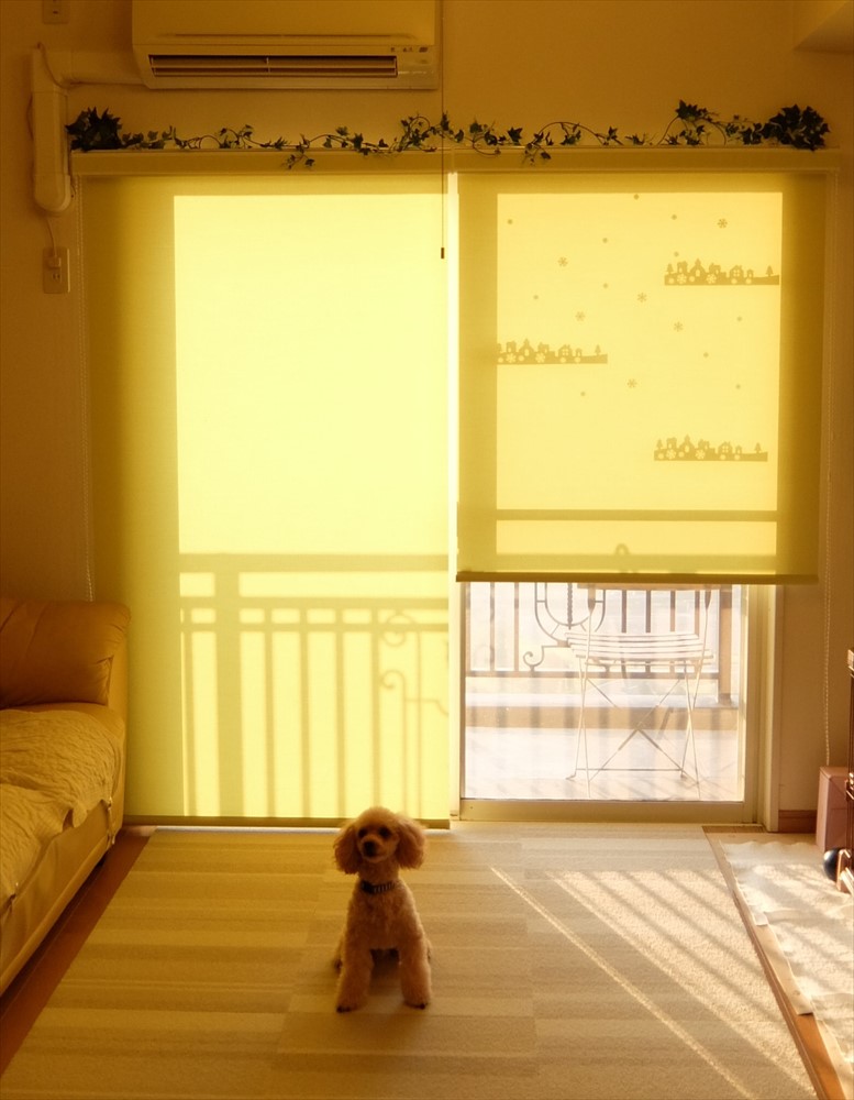 お客様が仰る通り影絵のようで、楽し気な世界に一つだけのロールスクリーンに仕上がっていますね!