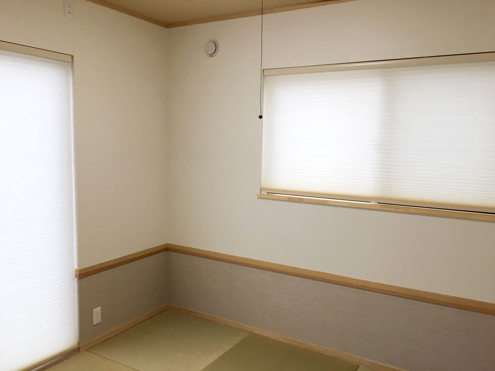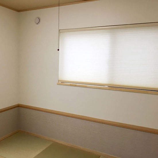 和室は、コーディネイトをお悩みになる方が多いお部屋でございますが、ハニカムスクリーンはカーテンに比べスッキリとした印象で合わせていただきやすいです。