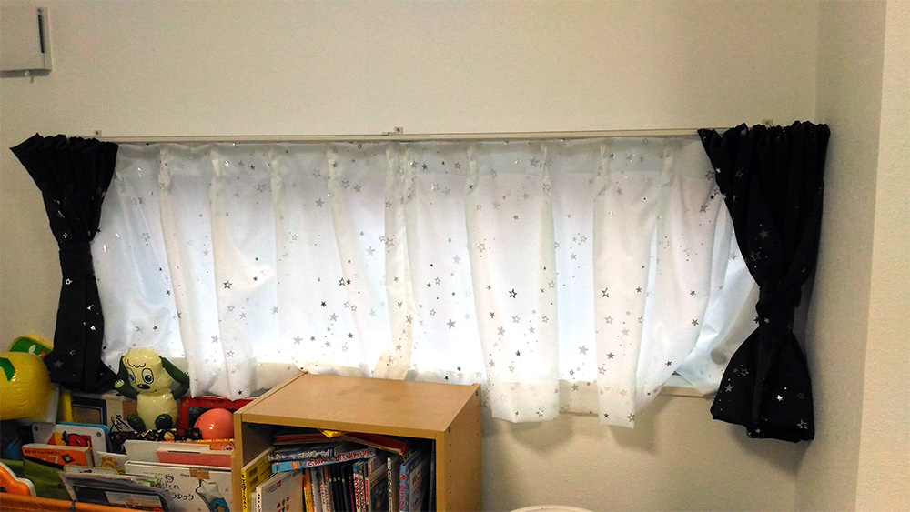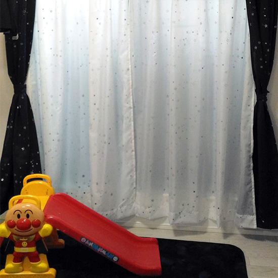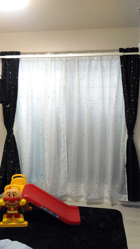 子供の要望でお星様が散りばめられたカーテンは一目惚れだったようです。