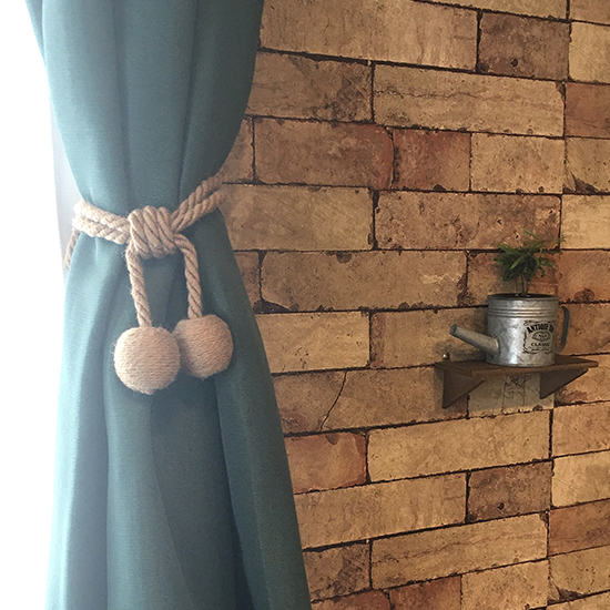 厚地カーテンには簡易のタッセルは付いていますが、特に無地のカーテンや落ち着いた柄のカーテンにタッセルは本当におすすめです!
