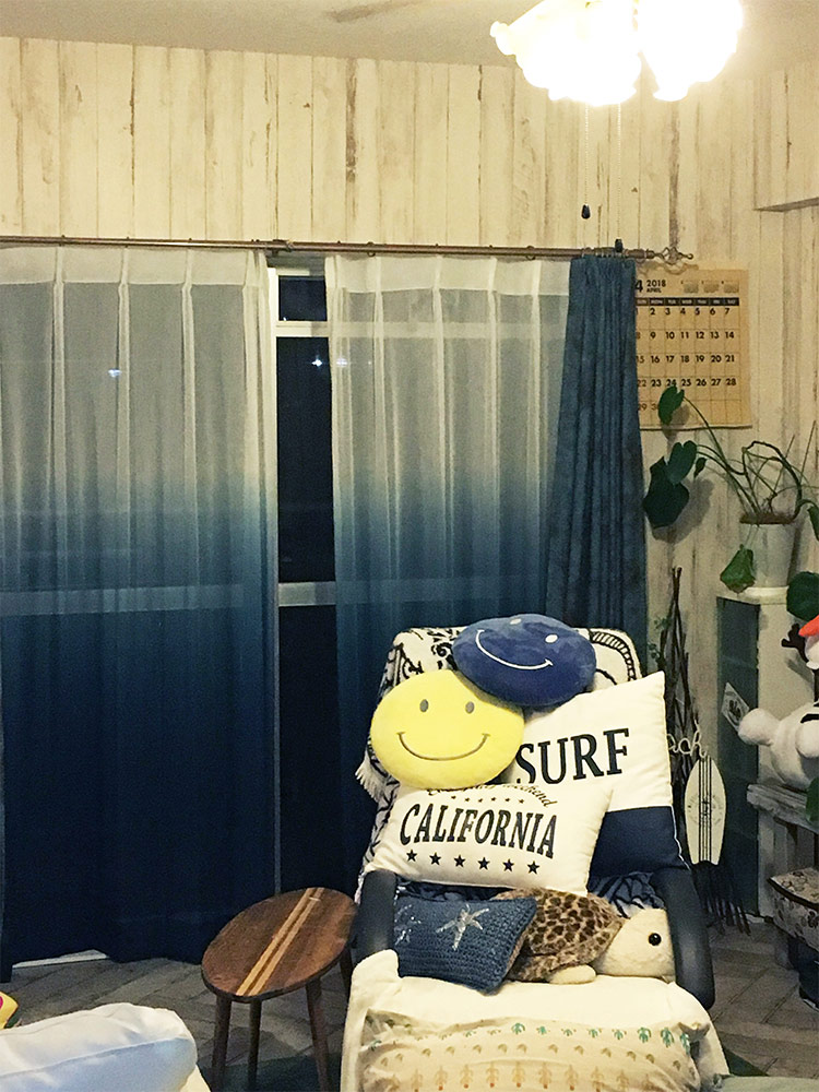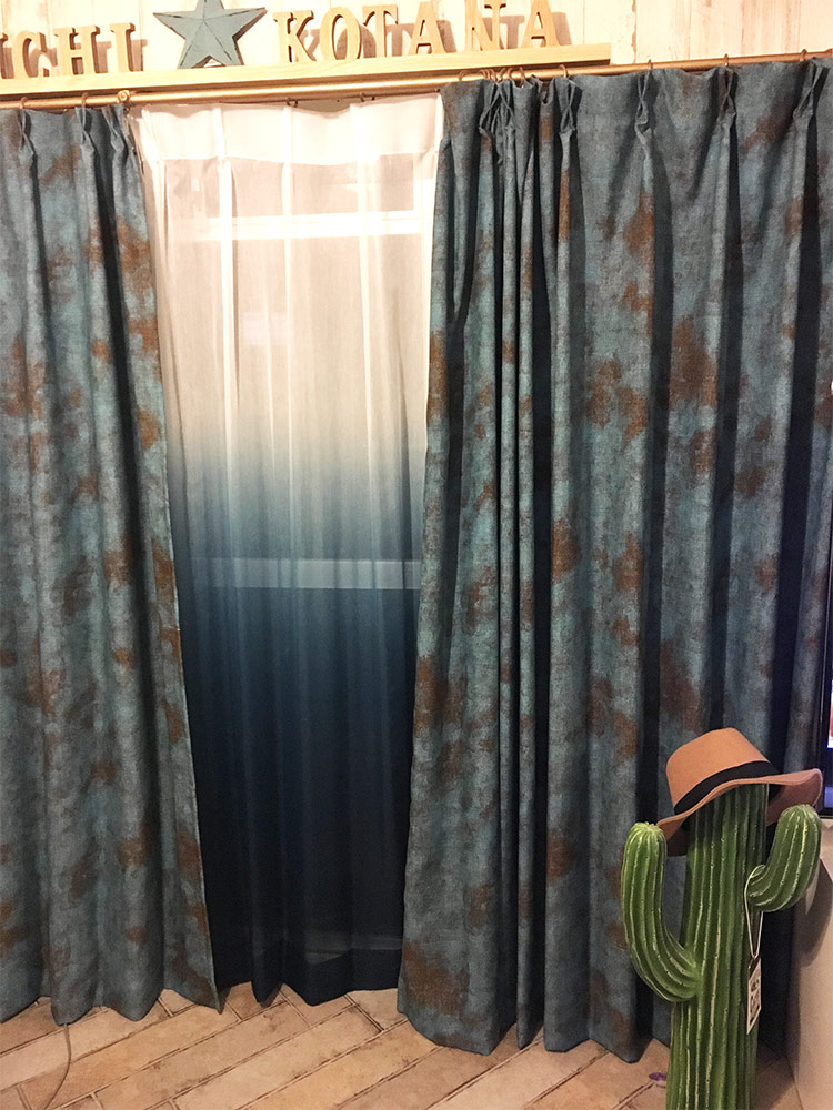 壁や床などお部屋全体の雰囲気とカーテンのデザインとがマッチしてすごくおしゃれな空間になっていますね♪