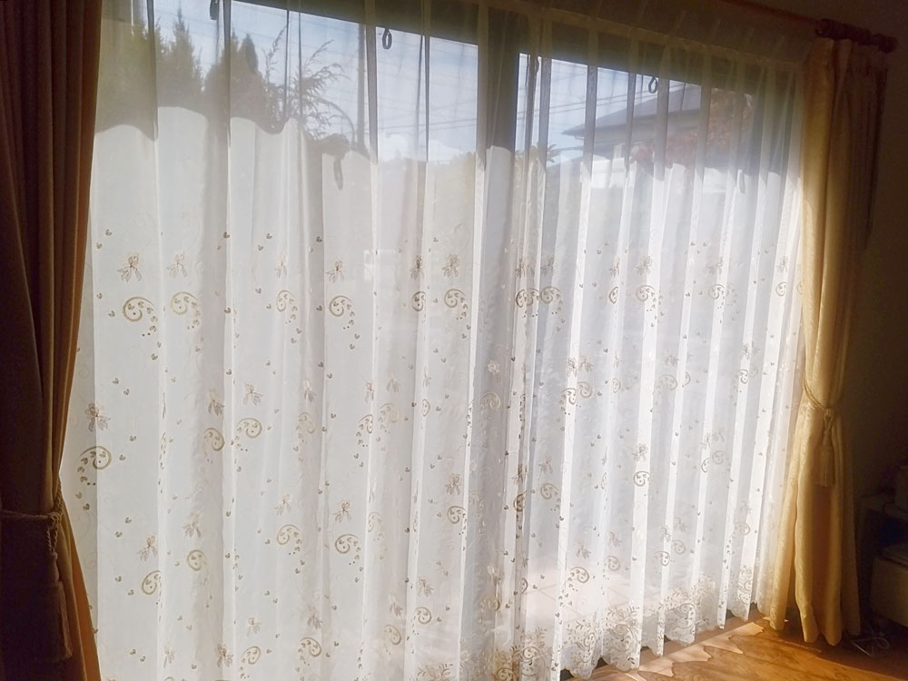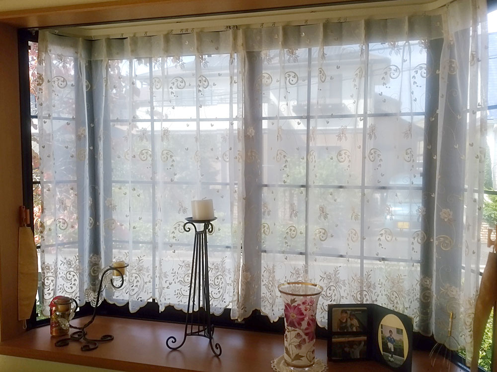 光を通す薄手のレースなので、日中はお部屋の中に刺繍のシルエットを映し出し、お部屋をより一層素敵な空間に仕立て上げてくれます。