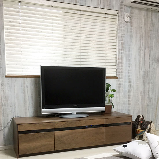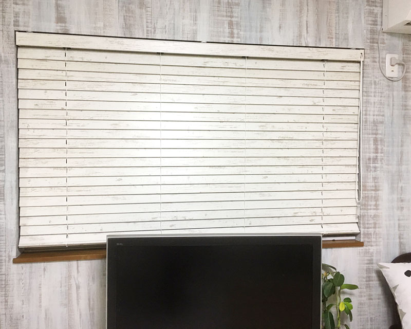 ブラインドとロールスクリーンでどちらにしようか悩みながら探していた時に、アンティークウッドブラインドを見つけて一目惚れしました。