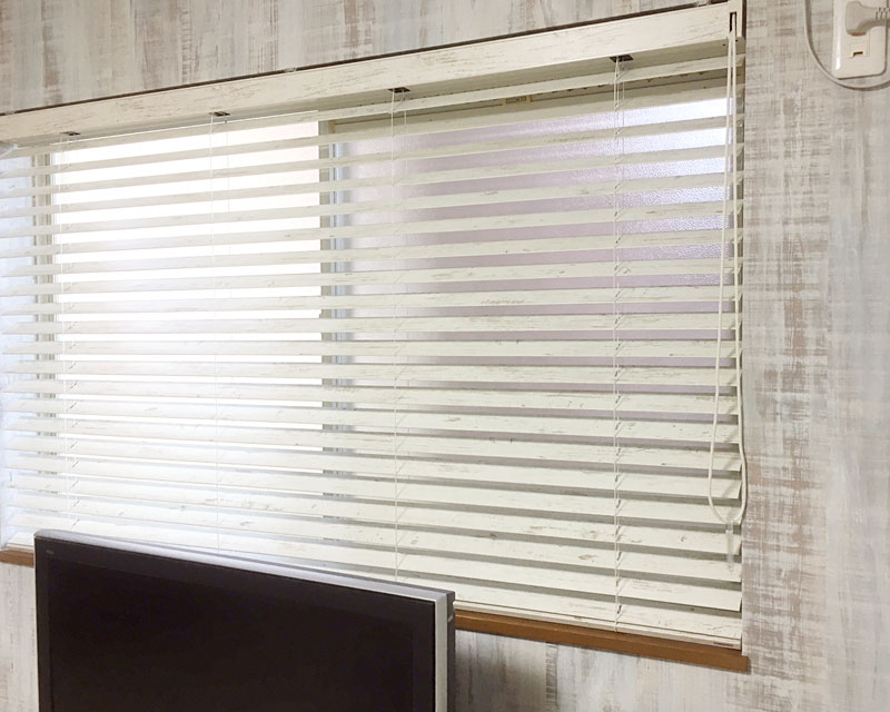 アンティークウッドブラインドは、あえて粗く塗ったペンキのような色味・風合いを出すことで、様々なテイストのお部屋に溶け込みます。