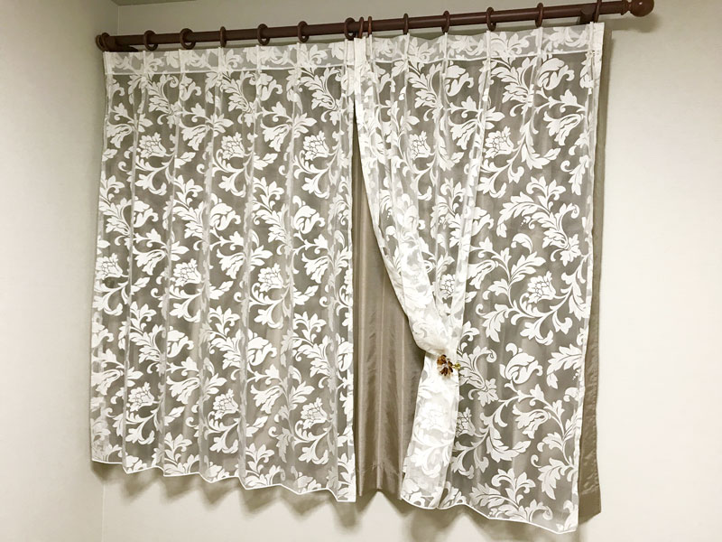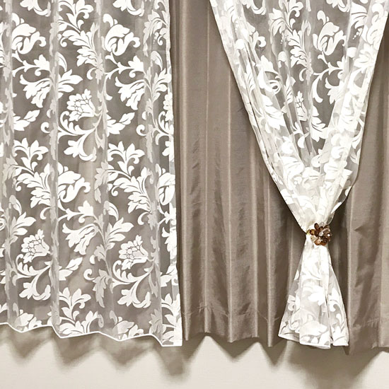 そして、そちらに合わせて頂いたのが繊細な刺繍がとっても素敵なレースカーテン<フローリッシュ>です!