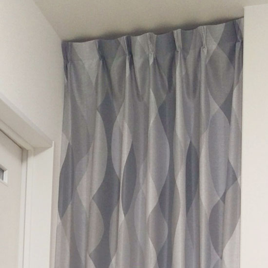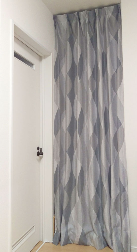 既製品のカーテンは思った長さがなく、以前から見ていたびっくりカーテン様のスパイラルカーテン(グレー)を注文しました。