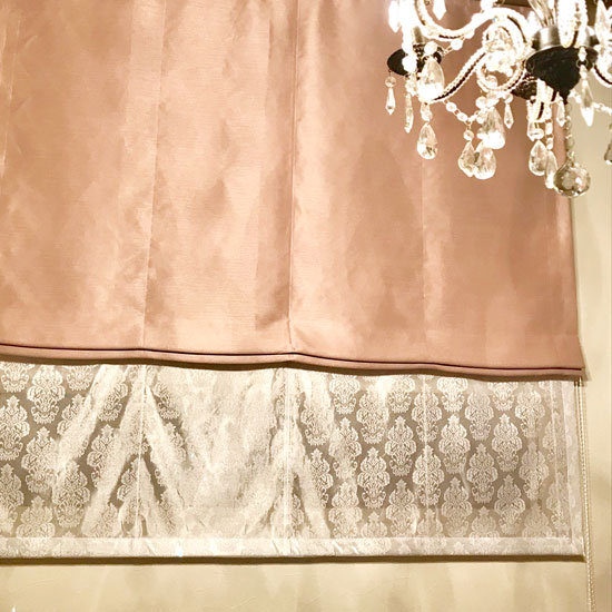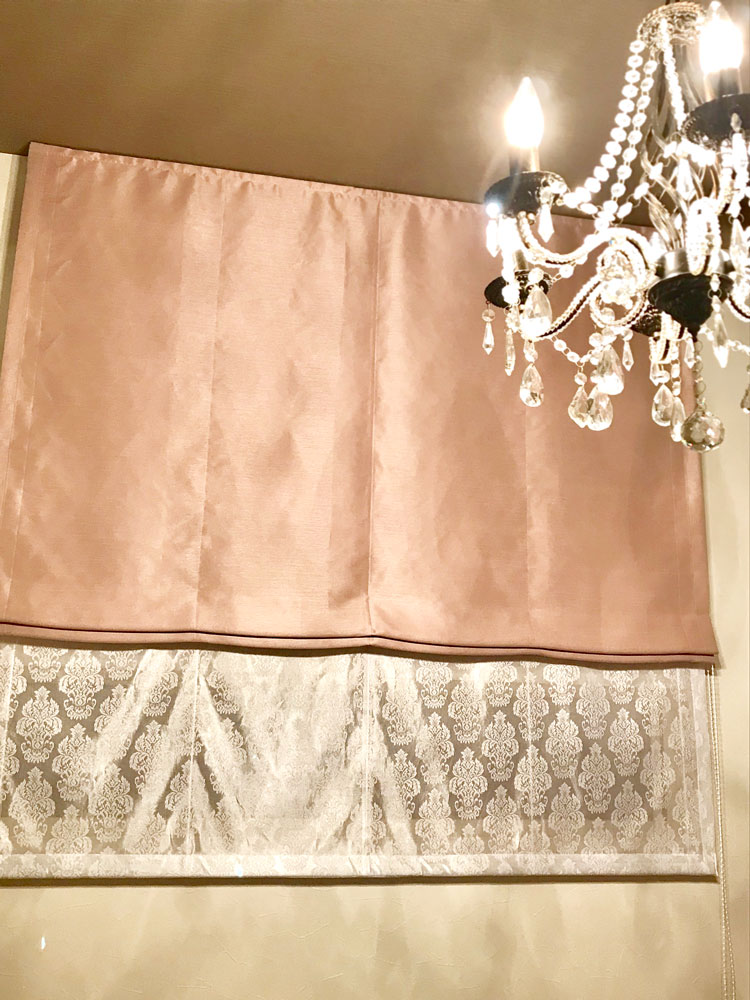 ヴァレンチ ピンクとペアレースルイで寝室のシェード を作っていただきました。