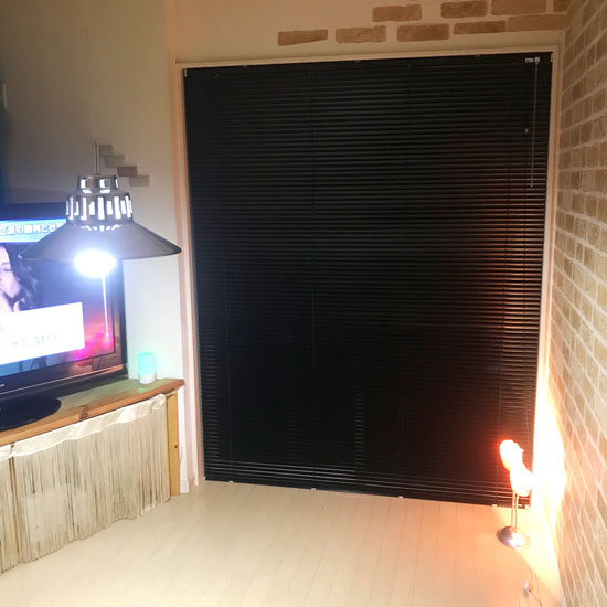 オシャレなレンガ調の壁紙に、ブラックのアルミブラインドがかっこいいですね(*`ー´)ノ