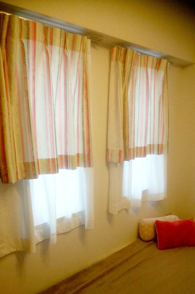 入居してから寸法を測りオーダーする予定でしたが、売り切れ間近表示になったため慌てて注文させていただいたため、腰高窓分の長さが足りていません。