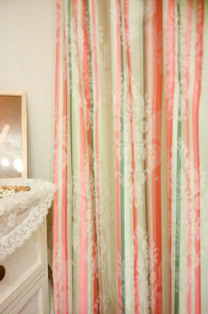 綿混ならではの風合いに仕上がった素敵なカーテンになっておりまして、シンプルなストライプがジャガードの織り柄を一層引き立てている、そんなデザインになっています。