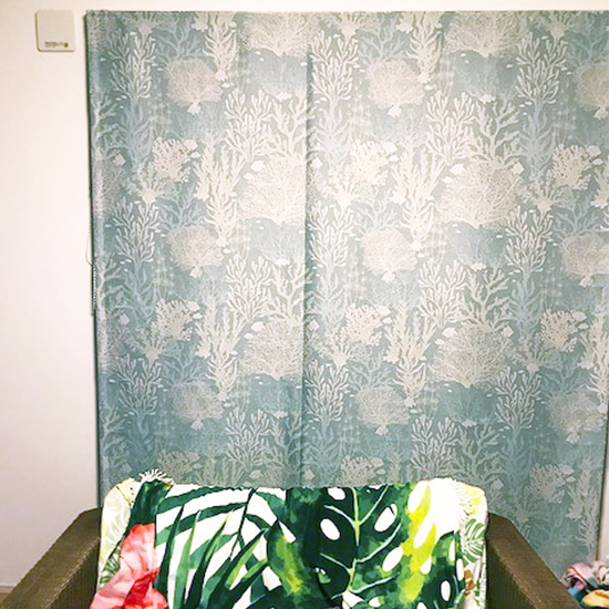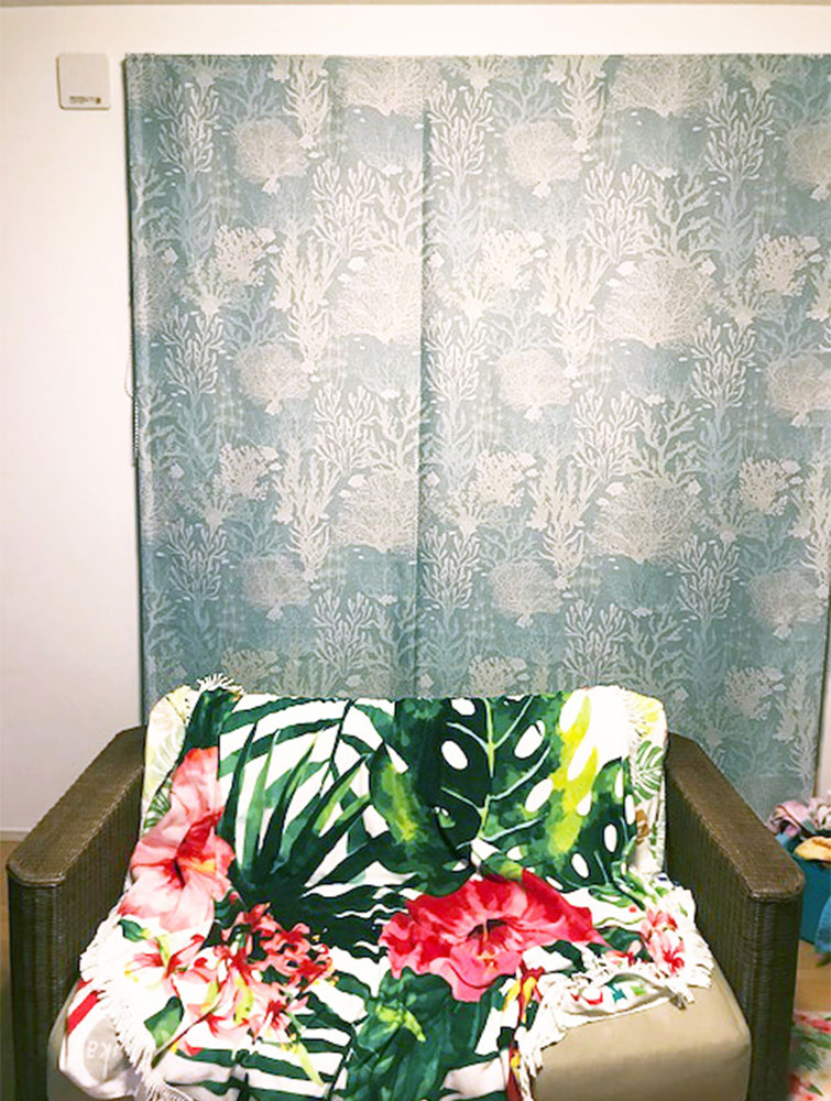 ハワイアン なイメージのお家にしたので、ぴったりな海のカーテンとシェード気に入っています!
