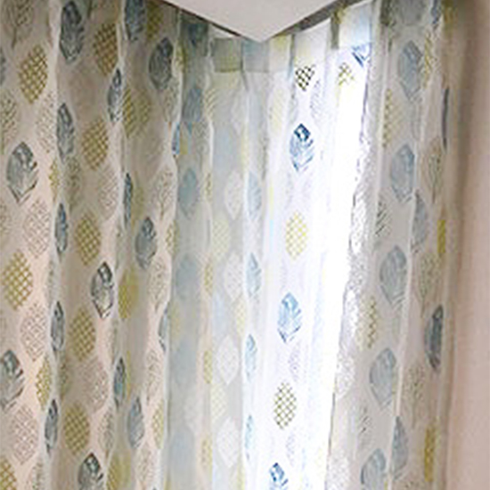 【 greenery -グリーナリー-】オパールプリントで透明感が美しいレースカーテン <リーフオーナメント ライトブルー>