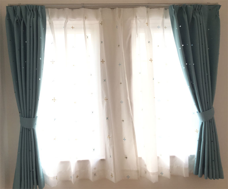 (レール:クロッシーウッド/カーテン:シャインスターズ ブルー/レース:レーススーク)