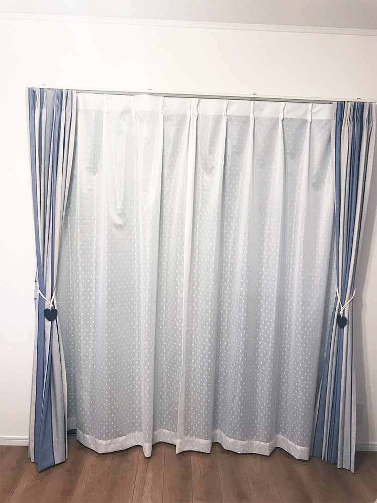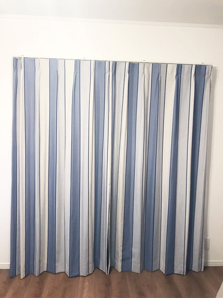 ナチュラル風な青系のカーテンという希望をお伝えして、このカーテンをご紹介いただきました。