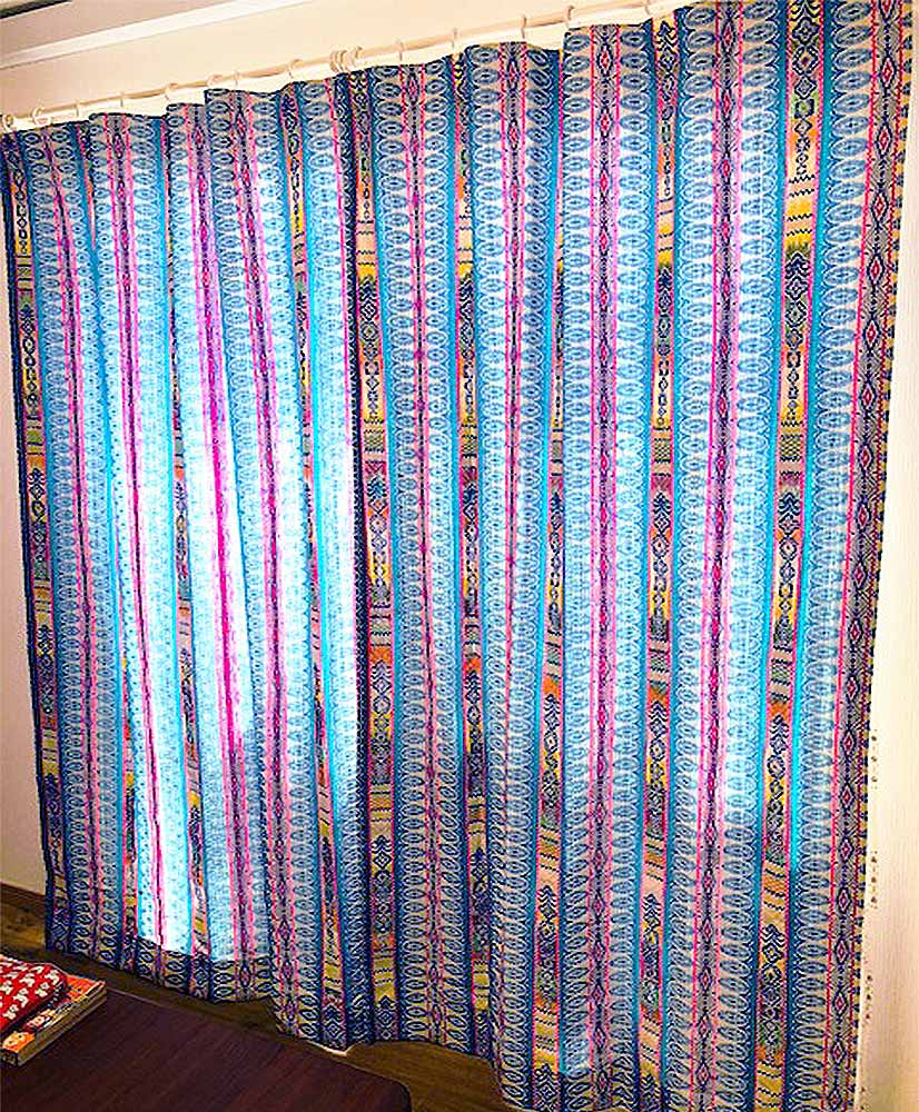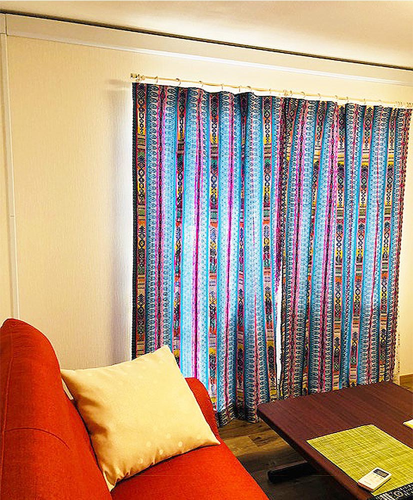 カラフルな色のカーテンですが、ブルーやグリーンが貴重で眩しすぎない色合いになりました!生地もしっかりしていて大満足です!