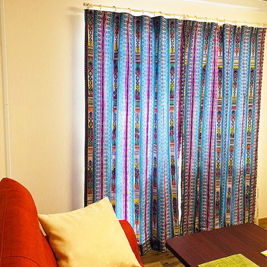 お客様のご感想にもあるように、このカーテンはジャガードの細かい織り柄の中に、たくさんのお色が配色されており、一枚でも存在感のあるデザインとなっております(´∀`艸)?