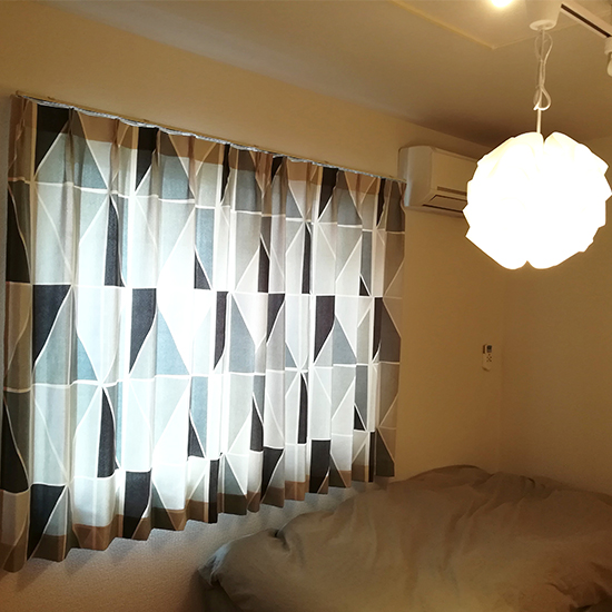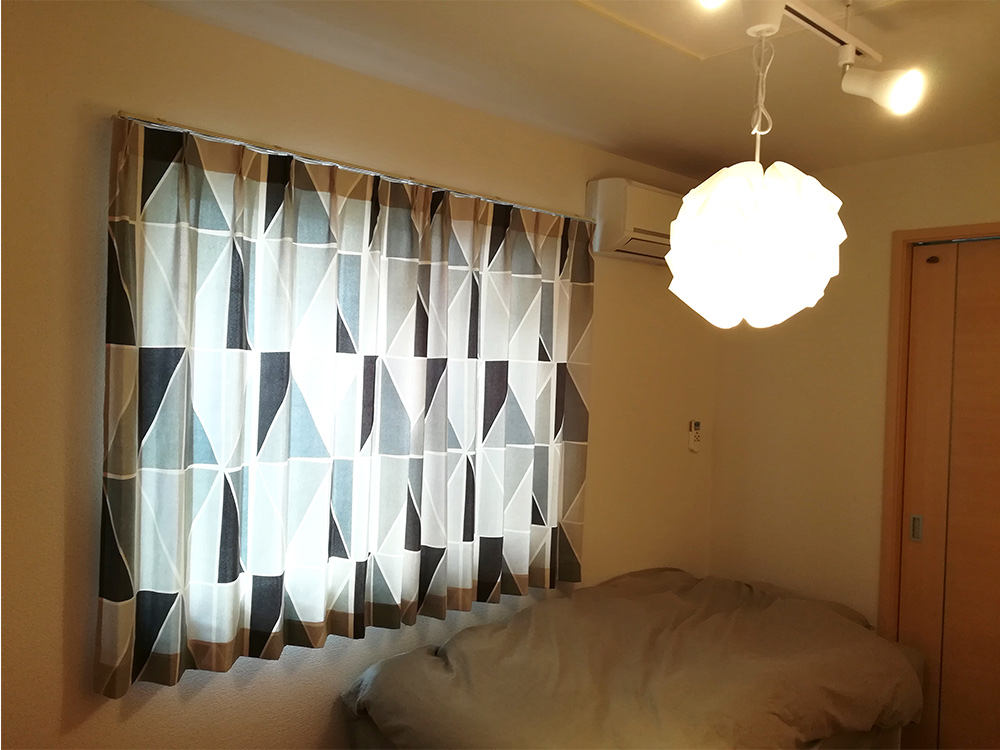 照明とカーテンがお互いに雰囲気を引き立てあって、お部屋の印象がグッと良くなりました!