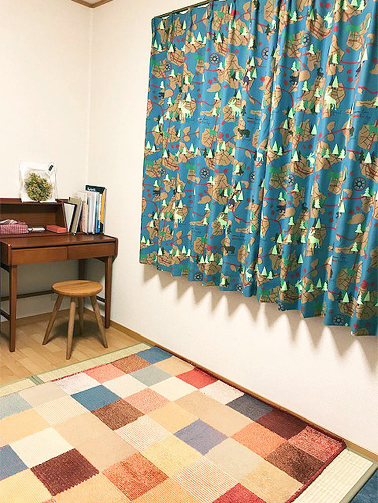 タイル目のラグとデスクの色調とカーテンがマッチしておりまして、とってもお洒落にコーディネイト戴いております♪