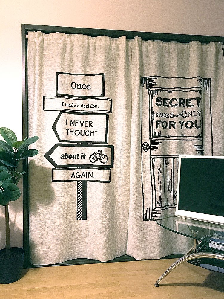 部屋が6畳と狭く、なるべく圧迫感を感じさせない為に、襖を外し、仕切りカーテンを探しておりました。