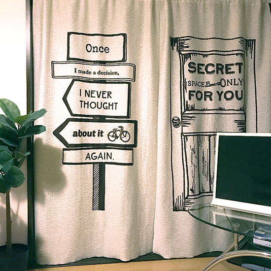 <シークレットドア ブラウン> <サイン ブラウン>は間仕切りにも使用できる、ヴィンテージタペカーテン です。