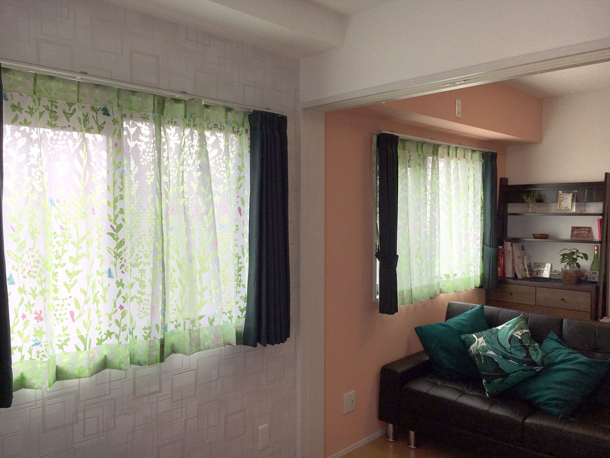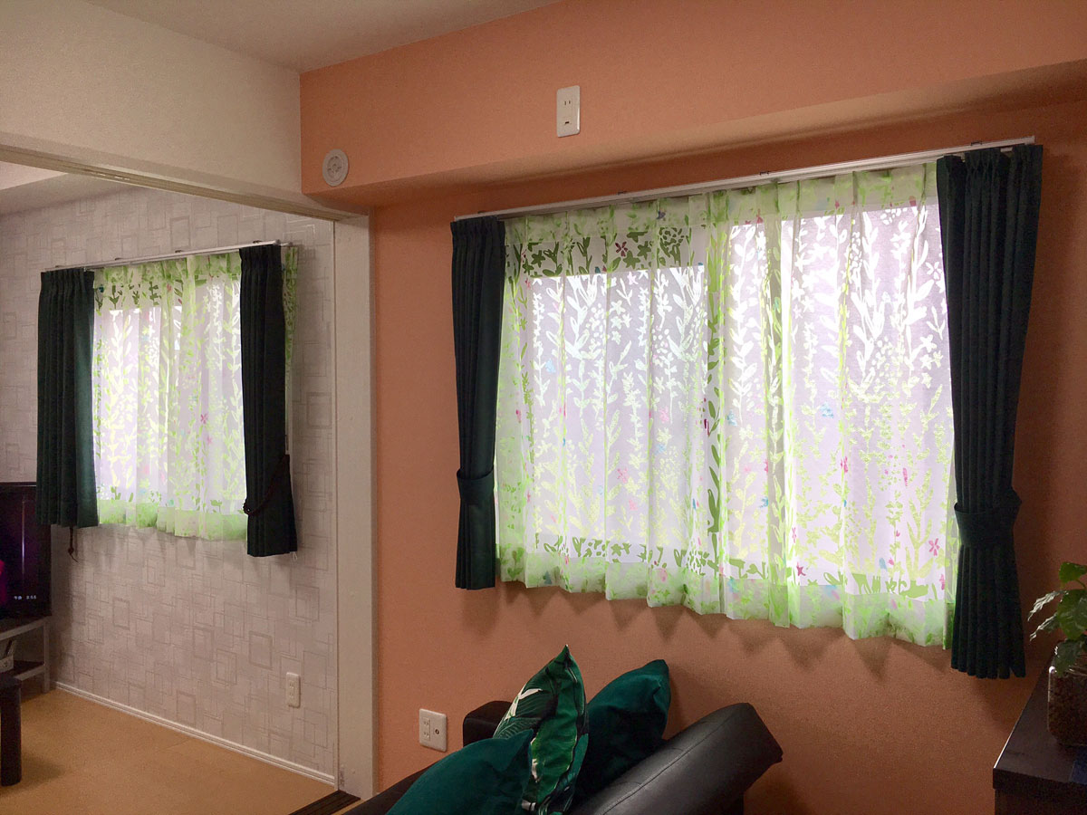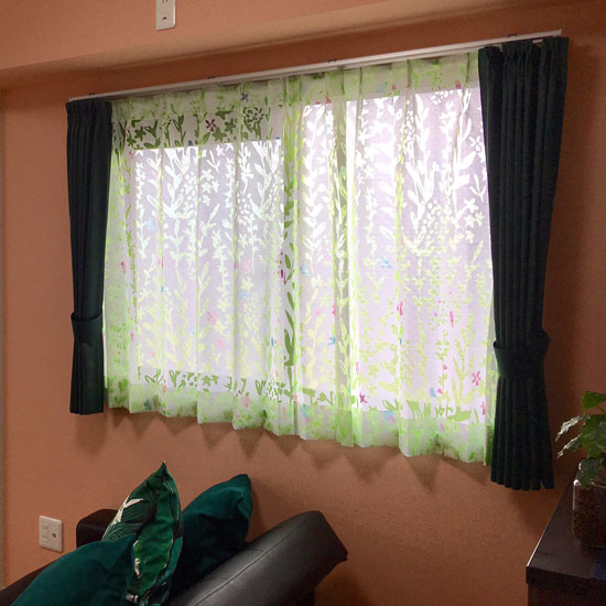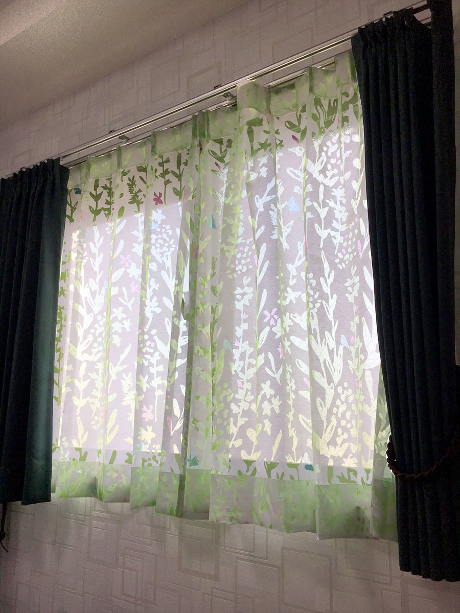 遮光カーテン、レースカーテンどちらも素敵な色で、お天気のいい日はレースカーテンから黄緑色の光が部屋に入って、とても綺麗で大満足です!!