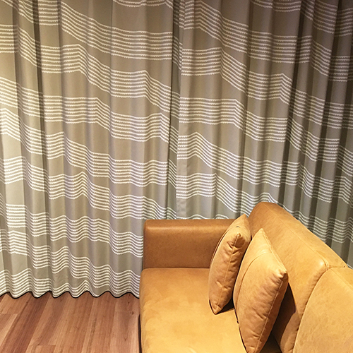 フリルロードはフリルの付いたラインがランダムなボーダーになっているカーテンです!