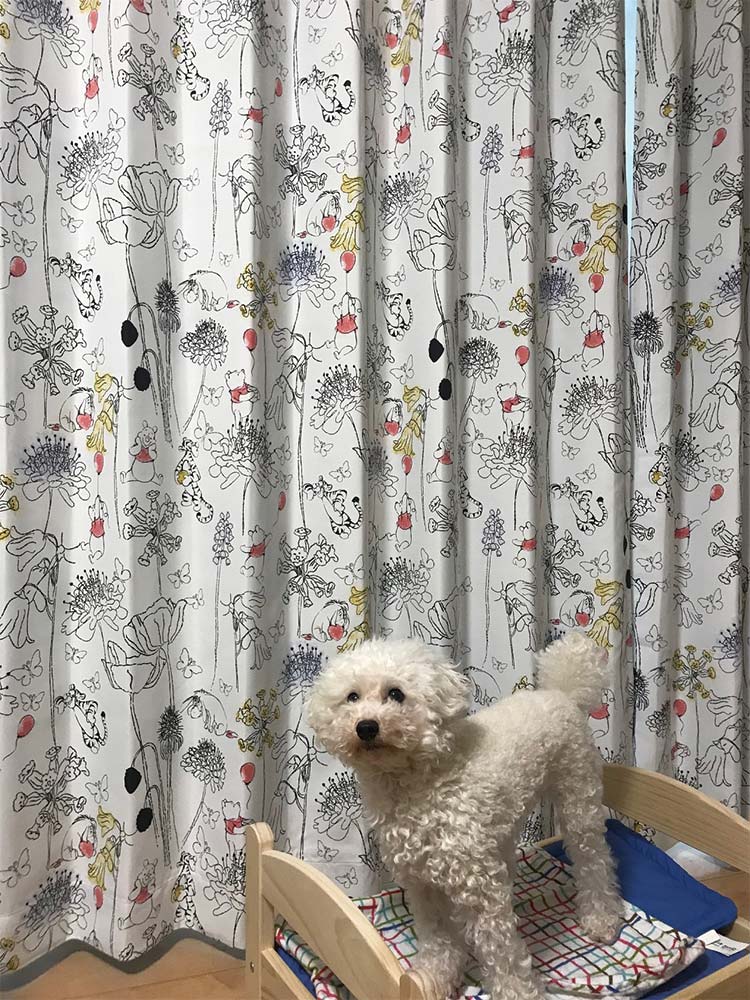 こちらのカーテンに負けない、かわいいワンちゃんご一緒にお写真を撮影して頂きました(*’▽’)