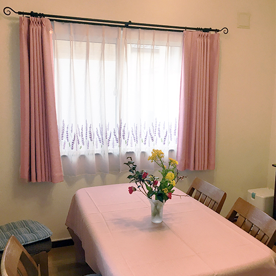 ラベンダーのレースは人目ぼれで今回は腰窓の部分だけ、
