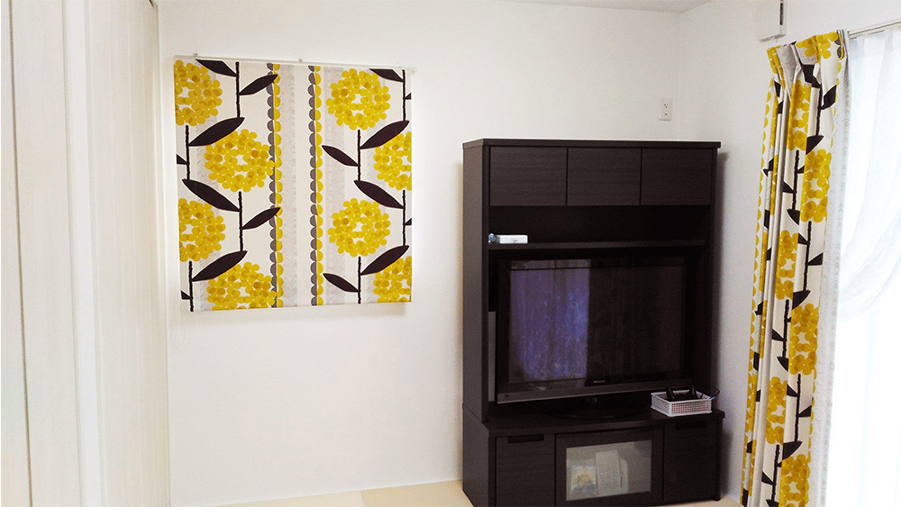 白基調の部屋なのでデザインに悩みましたが、リビングは清々しく、和室はパッと明るいデザインにしようと思い2つのデザインを注文しました。