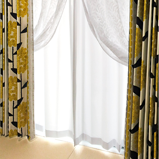 厚地カーテンは<エコロ ジューンフラワー>と<ヴォイクッカ イエロー>、ダブルレースカーテンからは<アルブル グリーン>と<ニウ ホワイト>のお写真をいただきました!