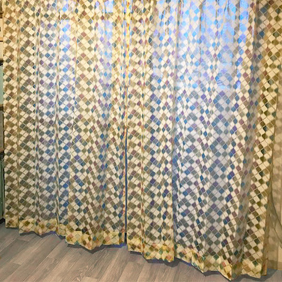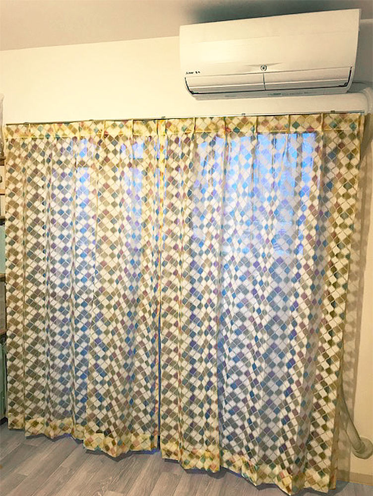 麻のカーテンだと、閉めた状態でも光を透けさせてくれるので、幻想的な色が浮かびますね…!