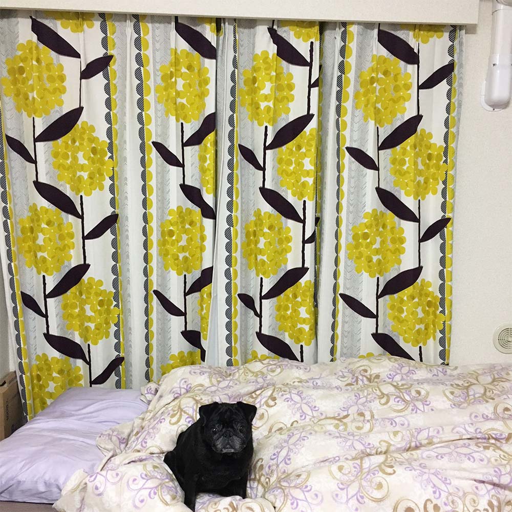 カーテンより先にカメラ目線のくりくりな瞳に目がいってしまいました(笑)
